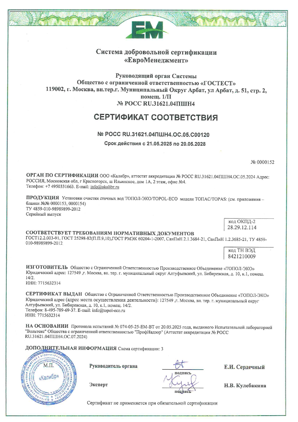• Сертификат соответствия Топас